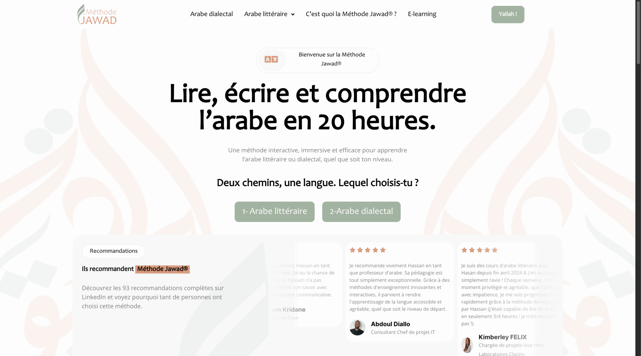 Création d’une plateforme interactive pour apprendre l’arabe en ligne, avec un design premium et une expérience utilisateur fluide.