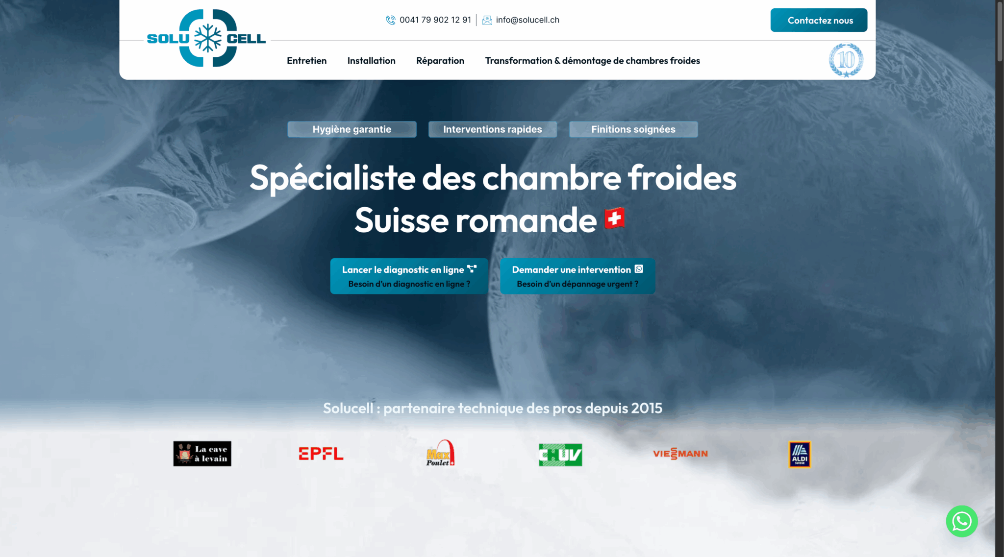 Site professionnel pour une entreprise spécialisée dans les solutions frigorifiques, avec mise en avant des prestations et devis rapide.