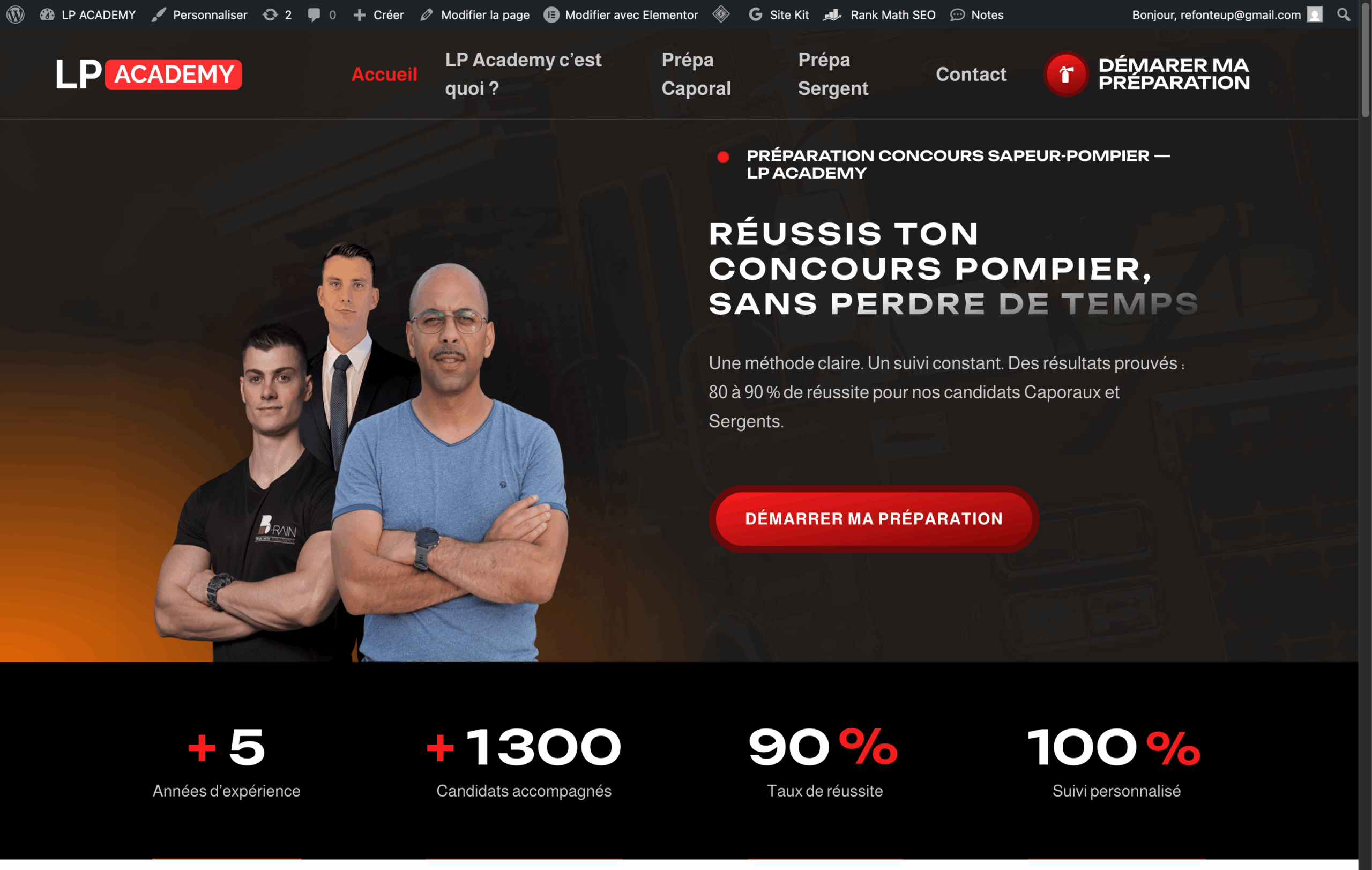 Conception complète du site de formation en ligne pour les concours de sapeurs-pompiers. optimiser le parcours utilisateur jusqu’à l’achat.