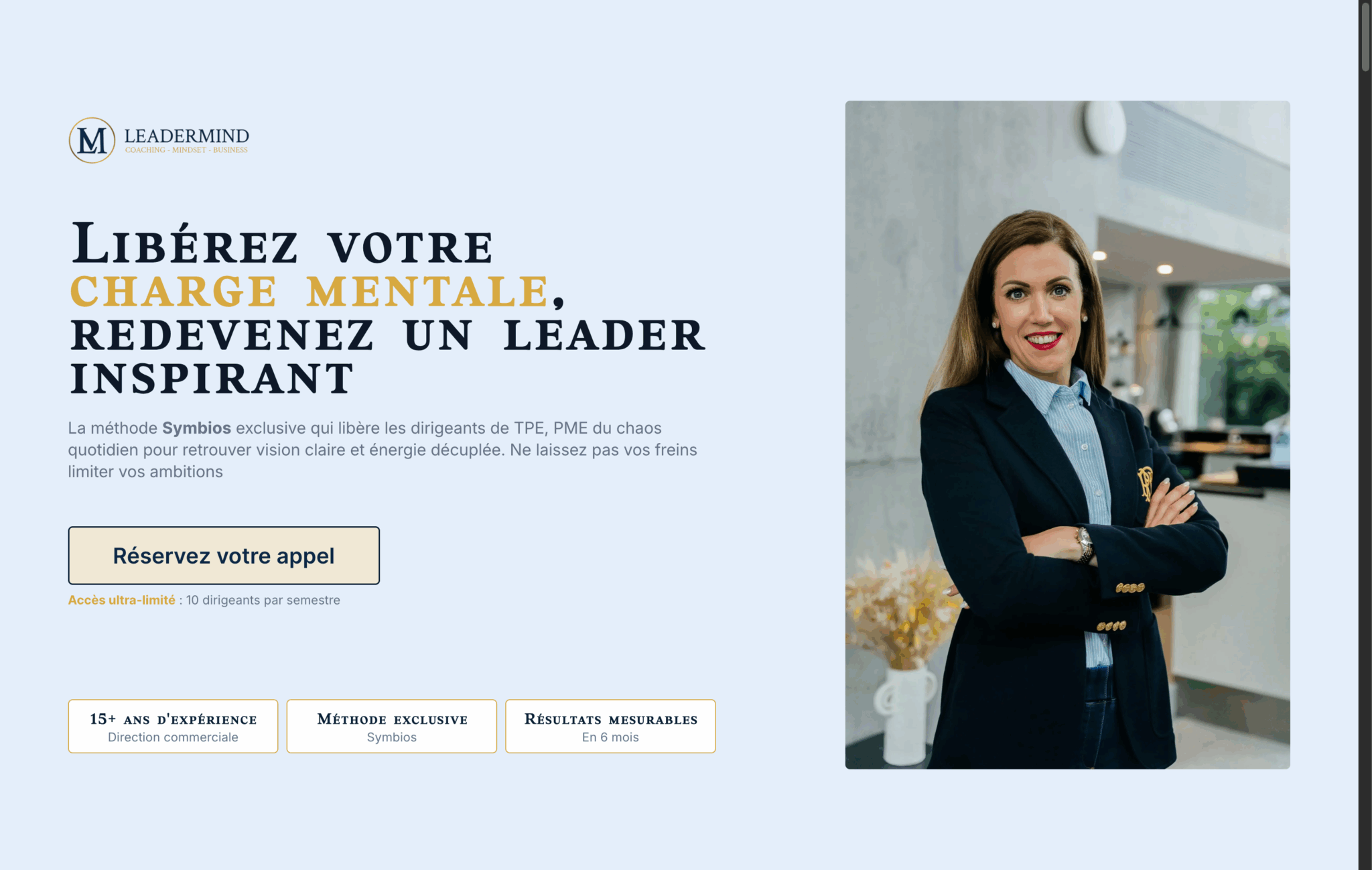 Conception d’une page de vente persuasive et optimisée pour un organisme de formation, axée sur la conversion.